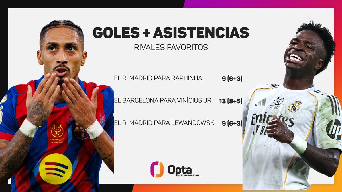 北京时间1月12日,在西班牙超级杯决赛中,巴塞罗那和皇家马德里上半场就上演了进球大战,前45分钟过后两队2-2战平,其中有3粒进球全都发生在上半场的补时阶段。根据Opta的统计,本场比赛维尼修斯(45'+2')、莱万多夫斯基(45'+4')以及贡萨洛-加西亚(45'+6')的3粒进球是本世纪各项赛事的西班牙国家德比首次出现上半场补时阶段打入至少3球的